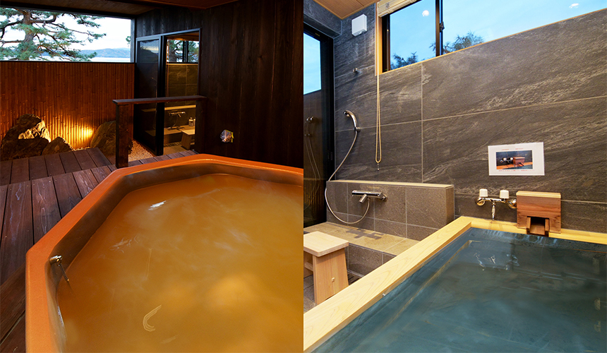 Each ocean-view villa is equipped with its own private hot spring bath, featuring two different types of natural spring water.