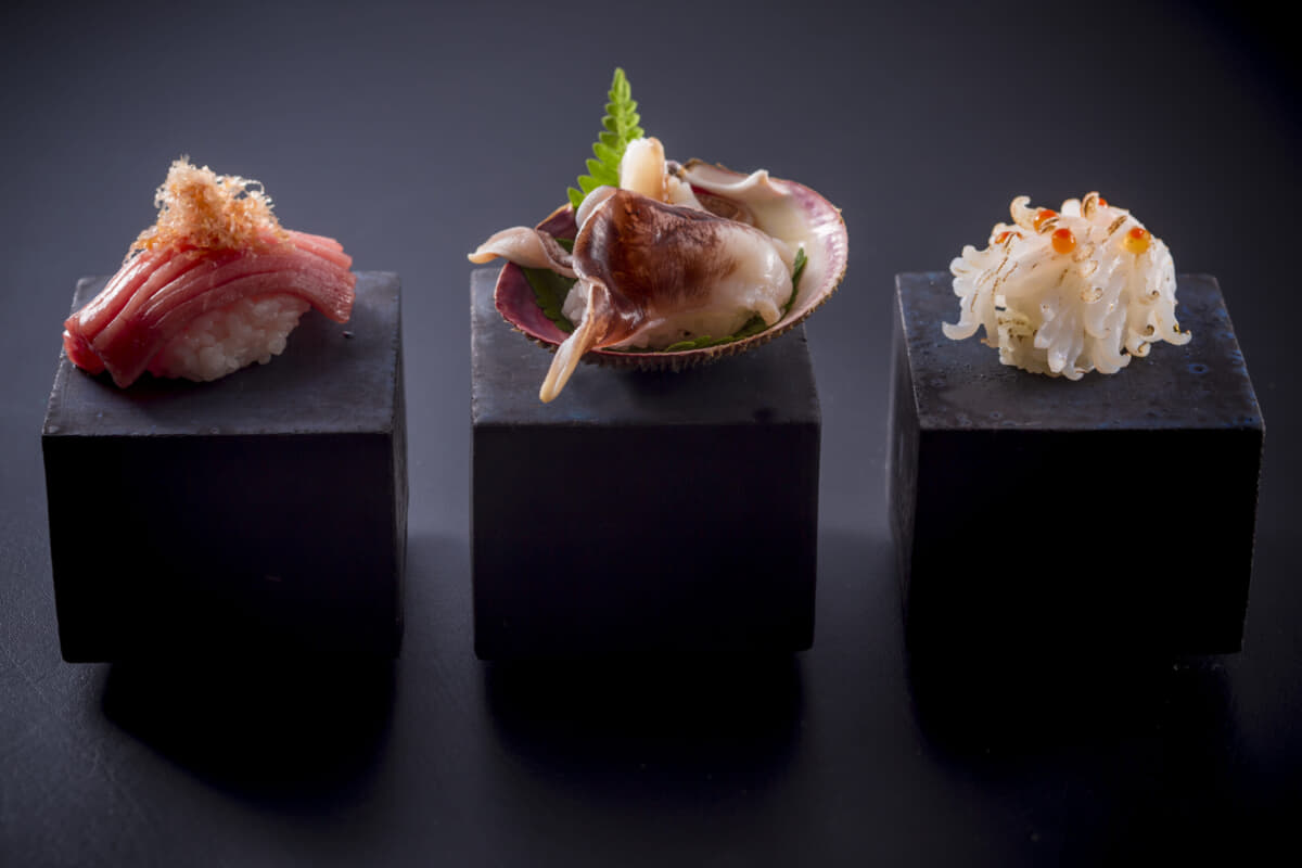 At Hoshine, three large tanks receive a constant supply of fresh seafood from twelve different fishing ports.