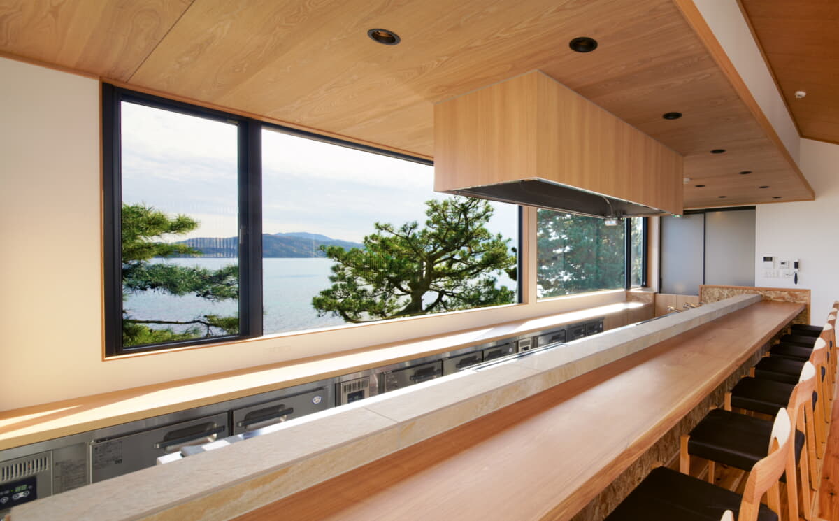 “KUROSAKI” offers spectacular panoramic views of the Sea of Japan, paired with sushi and Japanese dishes showcasing the seasonal bounty of the Tango region.