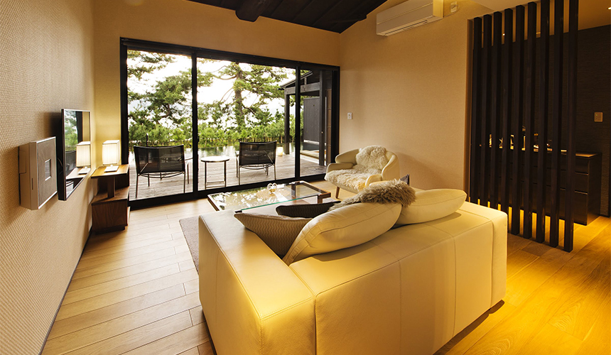 All guest rooms are equipped with two types of natural hot springs and a private pool. In the Special Rooms and Premium Rooms, guests can enjoy a heated pool even during the cooler seasons. Every room offers a breathtaking ocean view, and each features its own unique design with high-end furnishings and a sophisticated interior.