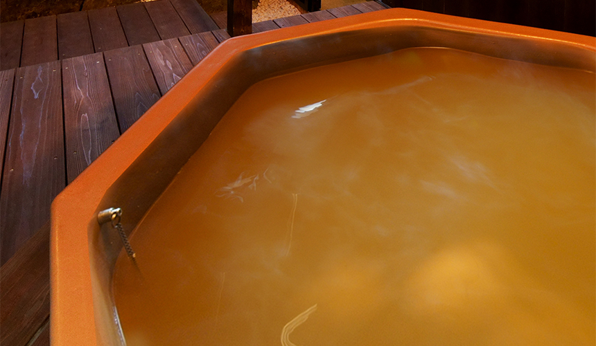Rich in iron, the Gold Onsen appears colorless and transparent underground but turns reddish brown when exposed to air due to oxidation.