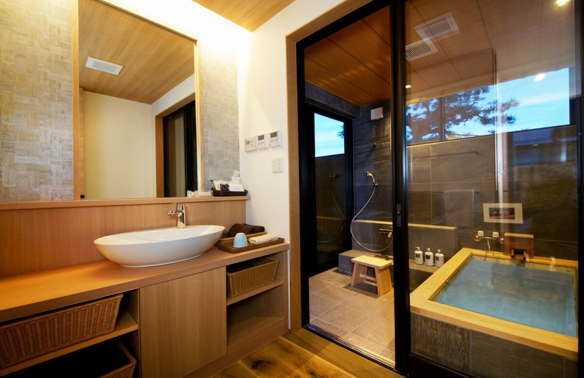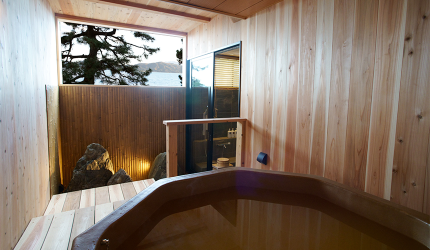 While soaking in this semi-open-air bath, guests can warm themselves to the core as they take in the sea views and the changing seasons.